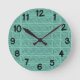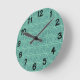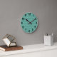 This wall clock has an Art Deco design made from a right angle with a maze set inside in teal on a field of sea green.