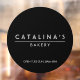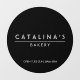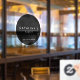A decorative art deco type treatment creates a unique identity for your business on this personalized window cling. Set in a round black circle to help draw attention. A great window sign for bakeries, cafes, shops, boutiques, restaurants and more. © 1201AM Design Studio | www.1201am.com