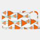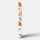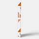 This phone case has an art deco design of triangles strung on teal lines in two shades of orange.