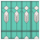 This fabric has an art deco stained-glass window design of diamonds and lines in white, black, and turquoise.
