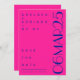 This chic art deco save the date features a hot pink and blue scheme. A bold Art Deco heading shows the date of the wedding, accompanied by the couple's first names, and details of the wedding, including the location, and that an invitation will follow. On the back is a modern monogram. Browse my collection for the matching suite. ••• For more bold wedding stationery, visit my store Zazzle.com/EventsByJessicaAmber ••• For custom orders, message me on Zazzle