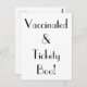 Art Deco postcard featuring the message 'Vaccinated and Tickety Boo!'. Send this card to tell people your vaccination status and how you are feeling! Easily personalise this message by editing the template text. Stylish simple minimal black lettering on a bright white background. Show your style with my Art Deco collection. Thanks for viewing my designs!