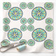 Art Deco Victorian Green Style - a graphic design with minimal stylized circles design. The predominant color is lime green, and the secondary color is bright yellow. The design follows a structural symmetrical line with interlocking sharps shapes. Thank you for viewing my realm of Niuris Art.