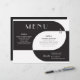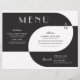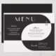 These vintage art deco style 11" x 8.5" wedding dinner paper sheet menus black and white lettering with geometric design in black and white on a black background. The menu has placeholders for 2 appetizers, 2 entrees, and 2 desserts and the wedding couple initials.