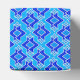 Art Deco geometric wallpaper pattern in cobalt and ocean blue with white on a cerulean / sea blue background
