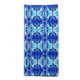 A vintage, Art Deco wallpaper / tiled pattern cloth napkin - shades of turquoise, white and teal, with a solid cobalt blue background
