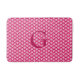An Art Deco pattern bath mat based on the traditional wave pattern often seen in Japanese textiles, in rich fuchsia pink and soft shades of coral pink, with monogram