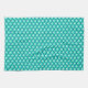 An Art Deco pattern kitchen towel based on the traditional wave pattern, often seen in Japanese textiles, in shades of turquoise, peacock and aquamarine blue