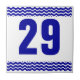 Art Deco Number Tile - Blue on white with a wave or water border. Miami