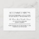 A clean and elegant wedding accommodations card featuring art deco inspired typography on a crisp white background. This single-hotel layout highlights the hotel name in graceful script with the address, booking URL, and reservation deadline in structured uppercase lettering. All text fields including the hotel name, address, website link, and booking deadline are fully editable.
