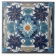 Art Deco White Daisy Flower Art Nouveau Blue Ceramic Tile