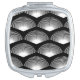 Do you like cute compact mirrors? This compact mirror has a white fan art deco pattern on a black background.