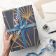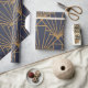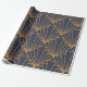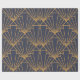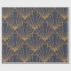 This wrapping paper has art deco design of diamonds and triangles in gold on a field of blue.