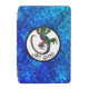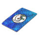 This phone case is decorated with a beautiful sparkling multicolor gecko silhouette in a circle. The background is a glitter blue pattern reminding water.
