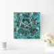 Art Glass Teal Blue Jewel Ocean Metallic Green Square Wall Clock