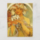 Art Nouveau Alphonse Mucha Flower post card. Alphonse Mucha’s beautiful allegorical portrait completed in 1897. A colorful lithograph that typifies Mucha’s ornate and flowery style. An expressive piece of art nouveau from the turn of the twentieth century.