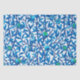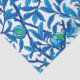 Tissue paper in a William Morris Art Nouveau tapestry pattern of exotic birds in a pomegranate tree, and fruit in cobalt blue and turquoise, accented with lime green, on a white background