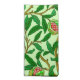 Dinner napkin in a William Morris Art Nouveau tapestry pattern of exotic birds in a pomegranate tree, with emerald green leaves, birds and fruit in lime green and deep ruby red, and a pastel lime green background