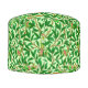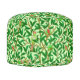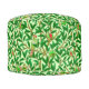 Pouf in a vintage William Morris Art Nouveau tapestry pattern of exotic birds in a pomegranate tree, with emerald green leaves, birds and fruit in lime green and deep ruby red, and a pastel lime green background