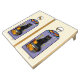 Natural Wood Cornhole Set, Royal Blue and Yellow bags