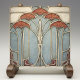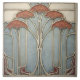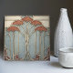 The "Art Nouveau Bloom Ceramic Tile" showcases a beautifully intricate floral design with stylized flowers that radiate warmth and elegance. The flowers, in rich shades of orange and red, are gracefully intertwined with slender, flowing stems and leaves, creating a harmonious and organic composition. The background transitions smoothly from soft greens to calming blues, enhancing the natural beauty of the design. The tile's pattern reflects the fluid and intricate lines of the Art Nouveau movement, making it a perfect blend of artistic craftsmanship and functional decor. Ideal for adding a touch of sophistication to kitchens, bathrooms, or living spaces, this ceramic tile is a testament to the timeless appeal of Art Nouveau design.