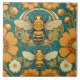 BUZZWORTHY. Beautiful ceramic tile featuring bees and flowers. Vintage Art Nouveau Inspired look. Generative Art design.