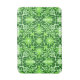 Bath mat in an Art Nouveau textile pattern, based on a vintage William Morris chinoiserie ceramic tile design, digitally rendered and colored for a soft, watercolor effect - lime green and white on a deep emerald green background