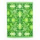 Art Nouveau textile pattern pendant lamp, based on a vintage William Morris chinoiserie ceramic tile design, digitally rendered and colored for a soft, watercolor effect - lime green and white on a deep emerald green background