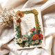 A bright and joyful wedding design featuring a golden Art Nouveau frame adorned with blooming daisies and gerbera flowers. The floral composition in rich shades of ivory, orange, red, and green evokes the warmth of a sunlit garden, blending vintage elegance with cheerful charm. Perfect for spring or summer weddings with a natural, romantic theme.