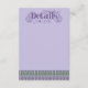 This elegant Art Nouveau details card is bordered by uniform rows of bright lavender thistle surrounded by scrolling deep green vines on a lilac background. The decorative floral announcement text color can be changed to meet your needs.