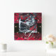 ART NOUVEAU FAUN Red Burgundy,Black Damask Square Wall Clock