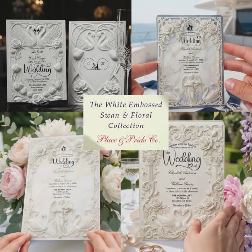 Art Nouveau Faux Embossed Swan Wedding Invitation