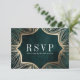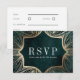 Art Nouveau faux gold RSVP, , a beautiful gilded design, with intricate patterns bordering a striking text. Perfect for drama with a hint of gothic luxury. Charcoal, Dark emerald and gray backgrounds, with a choice of foil effect details. The suite pairs well with crisp white envelopes and matching belly bands, or for added luxury choose one of the complimentary envelopes for a maximum effect. See the whole matching suite here https://bit.ly/2GX1wCJ