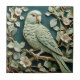 Art Nouveau Faux Relief R Parakeet Bird Teal Green Ceramic Tile