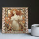 Elevate your interior decor with the timeless beauty of the Art Nouveau era, encapsulated in our exclusive ceramic tile. This unique piece features a portrait of an Edwardian model inspired by Alphonse Mucha's captivating lithographs from 1902. Known for his iconic contributions to the Art Nouveau movement, Mucha's illustration exudes ethereal charm and enchanting allure. Our artisans have framed this celestial beauty with meticulously designed Edelweiss flower ornaments, enhancing the motif's natural aesthetic. Edelweiss, a symbol of courage and purity, complements the muse, resulting in a harmonious blend of artistry and nature's elegance. This ceramic tile makes a perfect gift for art lovers or a sophisticated addition to your own space, embodying the enchanting narratives and captivating visuals of the Art Nouveau epoch.