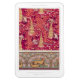 An elegant art nouveau, vintage, Victorian textile design by maurice verneuil. It features foxglove flowers, pheasants and foxes with grapevines. In colors of red, gold and green.