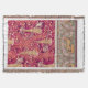 An elegant art nouveau, vintage, Victorian textile design by maurice verneuil. It features foxglove flowers, pheasants and foxes with grapevines. In colors of red, gold and green.