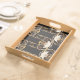 This is a well made, sturdy wooden tray with a flawless black finish and lovely map on the tray surface. It is both vintage & modern at the same time. Looks exactly like the photo; does not disappoint. So nice to find something of quality individually made and not the mass-produced 'shabby chic' merchandise seen in stores. I am so pleased to be able to give this to my college-age niece for her birthday. This can be used as a tray to hold jewelry or toiletries, or hung on the wall as art. The map surface is sealed (it is slightly shiny) so would be moisture resistant. It is well worth the asking price but I was able to apply a sale code as well. Very happy with my purchase. Map is crisp & clear and sealed with a water-resitant finish.