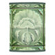 Features an art nouveau jugendstil flower tile design with crackling/ crazing look in the finish. Flower is very ornate with curly scroll foliage. Done in colors of green.