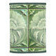 It was quick delivery, sooner than expected. This lampshade is exactly as described and the perfect size for my lamp. I replaced the old bell shape lampshade with this barrel shape and it allows me to place my lamp closer to the wall. I love the soft colors of this lamp shade and the modern-southwest design. In the evening, the light is a cream color. I am very happy with this lampshade and highly recommend this product. (Pardon the quality of my photos for this review.)
