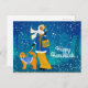 Art Nouveau Lady with Doodle Dog Holiday Postcard