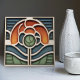Evoke the spirit of the Art Nouveau movement with this exquisite ceramic tile, inspired by the iconic "Glasgow Rose" style of Charles Rennie Mackintosh. The design features a beautifully stylized rose, with petals in a warm gradient of terracotta and burnt orange. The intricate center reveals a muted sage green with delicate, swirling lines. Below the bloom, flowing, wave-like forms in slate blue and green create a sense of organic movement. Each element is crisply separated by raised, creamy off-white tube-lining, giving the tile a stunning, tactile quality and a stained-glass effect. The subtle horizontal texture within the glaze adds another layer of depth and craftsmanship to this unique piece. It's a perfect accent for a fireplace surround, a statement in a kitchen backsplash, or framed as a standalone work of art.