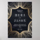 A beautifully dramatic wedding suite, with faux gold original Nuevo style intricate pattern, on a striking midnight charcoal base. Your text is picked out in a striking white, to create a contrast that spells luxury and drama. Perfect for a couple that wants to make an impact.