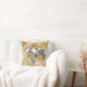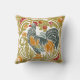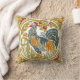 An art nouveau style rooster with fruit in each corner in greens reds oranges and grey. A perfect pillow for the kitchen dining area.