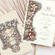This elegant "Save the Date" card features a stunning Art Nouveau design, adorned with intricate white lilies and lush foliage against a striking red background. The soft ivory frame and sage green accents create a harmonious balance, blending vintage charm with a modern romantic touch. The front presents the key wedding details in a delicate, ornate style, while the back displays an intricate floral motif that mirrors the beauty of nature. Perfect for couples seeking a luxurious and artistic wedding announcement, this card offers an unforgettable first impression for your special day.