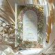 Announce your special day with this stunning Art Nouveau Save the Date wedding invitation, featuring intricate floral patterns and elegant gold foil accents. Inspired by Alphonse Mucha's classic designs, this invitation showcases a beautiful blend of green, ivory, and gold hues with detailed botanical illustrations. The front of the card includes a luxurious gold foil Save the Date header, framing the wedding details in an ornate archway design. Perfect for couples who appreciate timeless elegance and artistic details, this invitation sets the tone for a sophisticated and memorable wedding celebration.