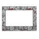 Photo Frame in an Art Nouveau pattern of strawberry plants, with leaves, flowers and berries, based on a vintage William Morris textile design, digitally enhanced and colored in black and white, with a dark graphite gray /grey background, and an accent of deep red berries