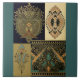 A collage of artistic, art nouveau prints by Christopher dresser. A mixture of arts and craft style , Victorian and art nouveau textile prints. Bold and elegant. In colors of black, gold and green.