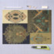 A collage of artistic, art nouveau prints by Christopher dresser. A mixture of arts and craft style , Victorian and art nouveau textile prints. Bold and elegant. In colors of black, gold and green.