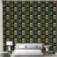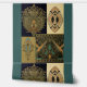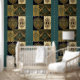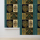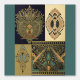 A collage of artistic, art nouveau prints by Christopher dresser. A mixture of arts and craft style , Victorian and art nouveau textile prints. Bold and elegant. In colors of black, gold and green / teal.